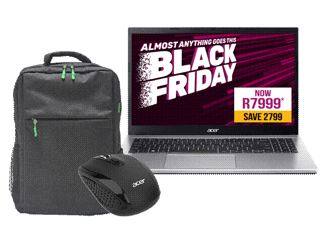 For a limited time only, customers can purchase the Acer Aspire 3 bundle for R7,999, which includes a free Acer laptop bag and wireless mouse — delivering a total saving of R2,799.