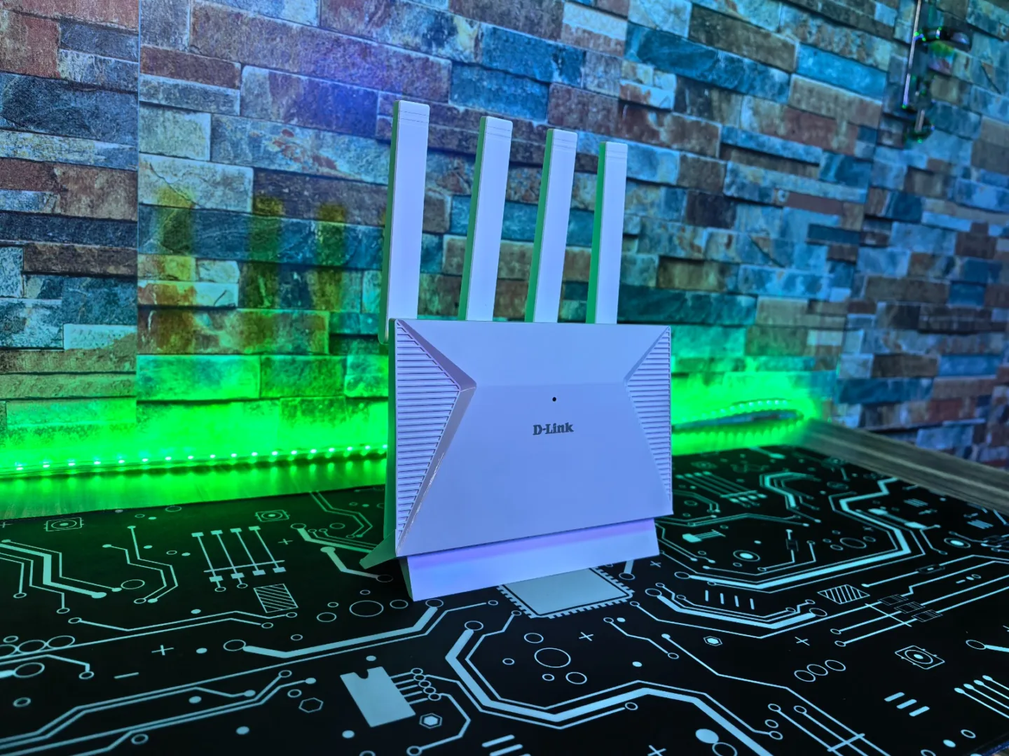 The D-Link DIR-BE364K comes in a clean white finish with a modern, minimalist look that fits easily into most homes. There’s no flashy RGB lighting or over-the-top “gaming router” styling here, just sharp curves, subtle design accents, and four external antennas that give it a purposeful but not aggressive appearance. The elevated base helps with airflow to keep the device cool, and the plastic construction feels firm and durable rather than cheap. Overall, it doesn’t look like a spaceship landed in the middle of your lounge, and for most households, that’s actually a big plus.