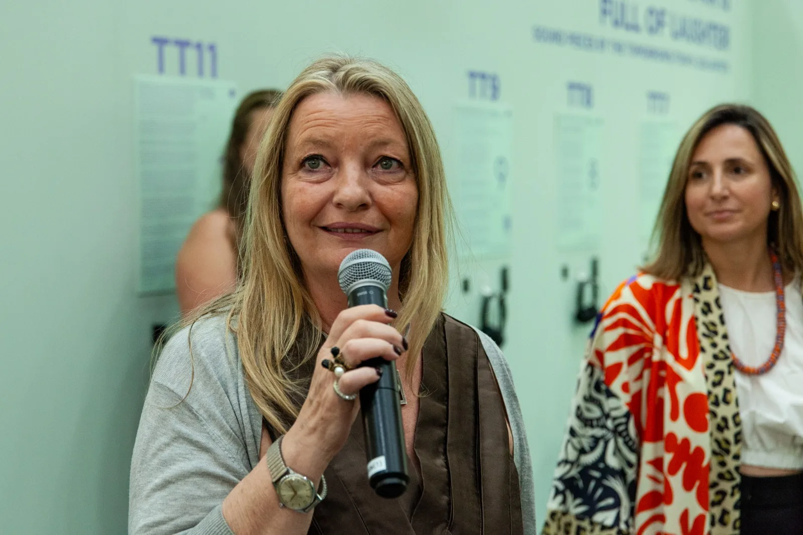 Held at the Cape Town International Convention Centre (CTICC), the fair was guided by the theme “Listen,” a prompt that Nwaubani answered through a radical exploration of Nigerian Igbo culture and collective creativity. At the heart of the installation were reimagined ogene gongs – traditional instruments used to summon communities – transformed into electrically conductive sensors. By completing the circuit through simultaneous touch, visitors “activated” the reimagined gongs to generate unique digital sculptures displayed as a form of augmented reality on LG OLED screens.